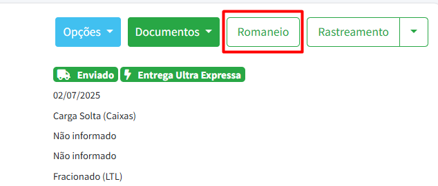 Clique em “Fazer download” ao lado do documento de expedição. Pronto — o romaneio estará disponível para visualização ou impressão.