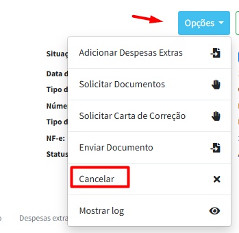 Importante: A ação de cancelamento dentro do WMS é irreversível.